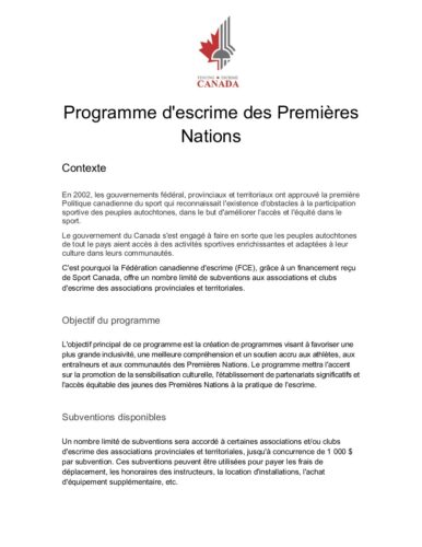 Programme d’escrime des Premières Nations